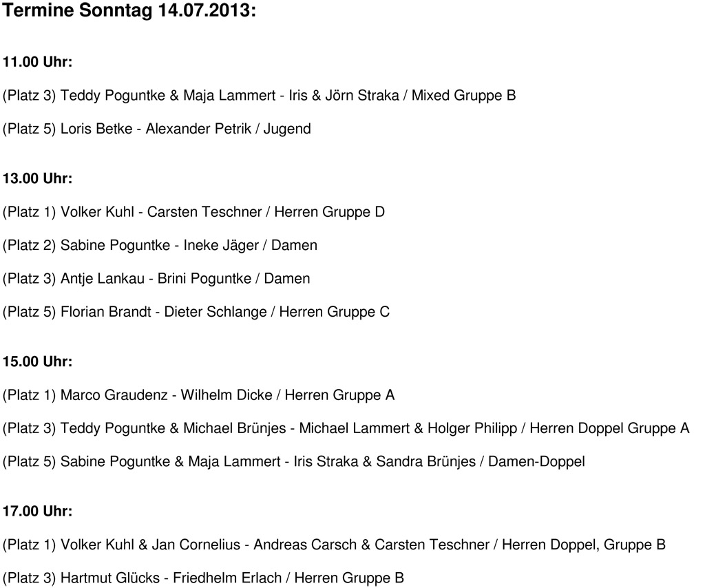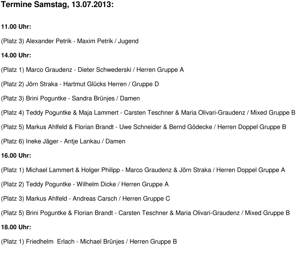 Weitere Informationen und die Gruppeneinteilungen sind auf dem Infoblatt "Tennis-Meisterschaften 2013" aufgeführt.