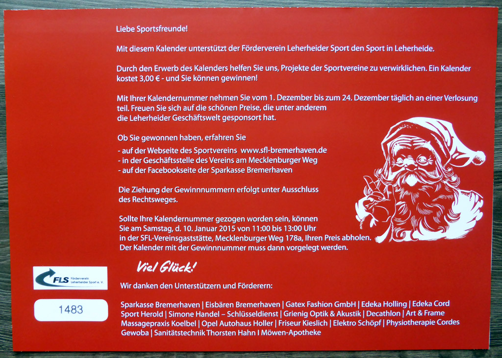 Der Haupterlös aus dem Verkauf der Adventskalender geht an den SFL Bremerhaven. Damit unterstützt der FLS besonders wichtige Projekte des Vereins.