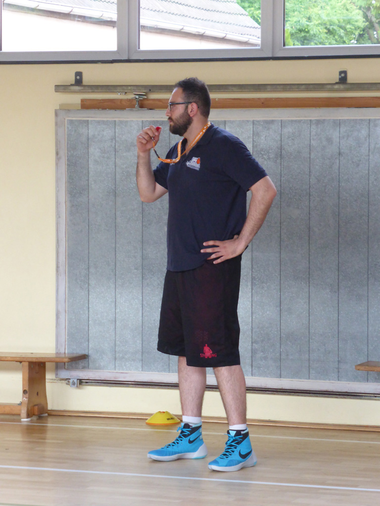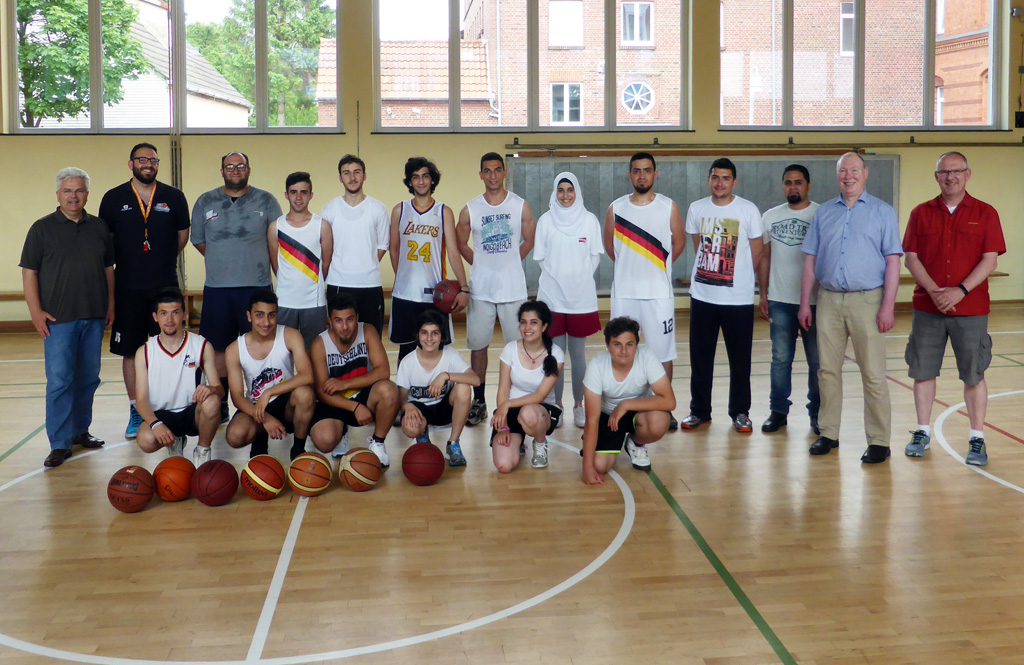 Thomas Becker, Jürgen Bohne aus der Basketballabteilung und Frank Schildt konnten sich bei einem Besuch der Gruppe davon überzeugen, mit welchem Engagement Kenan die Gruppe trainiert und wie die Basketballspieler/innen bei der Sache sind.