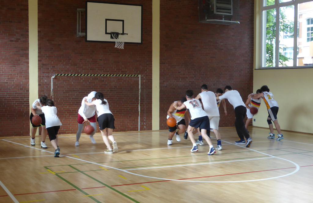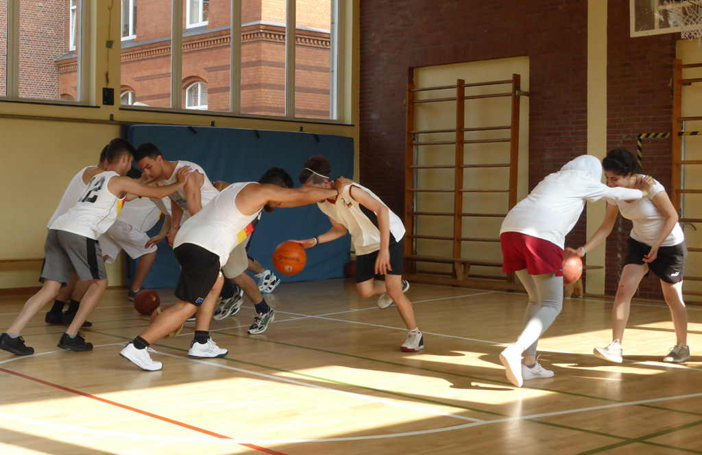 Mit einem Satz Kennzeichnungshemden (Leibchen) von Sport Herold ist es jetzt noch besser möglich, die Spielerinnen und Spieler der Mannschaften beim Basketballspiel zu unterscheiden.