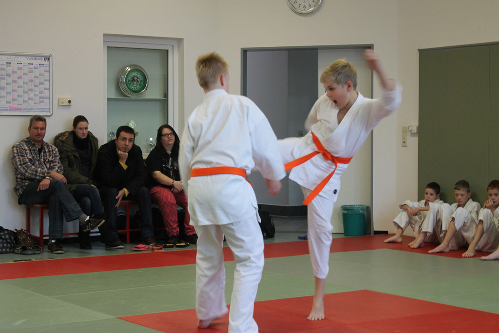 Meister in der 1. Gruppe Weißgurt wurde Felix Teschner und Mattis Teschner.