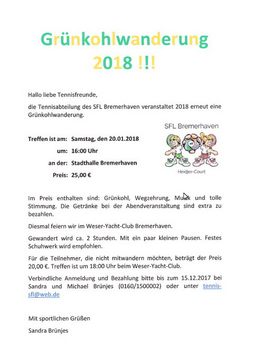 Tennis Grünkohltour 2018
