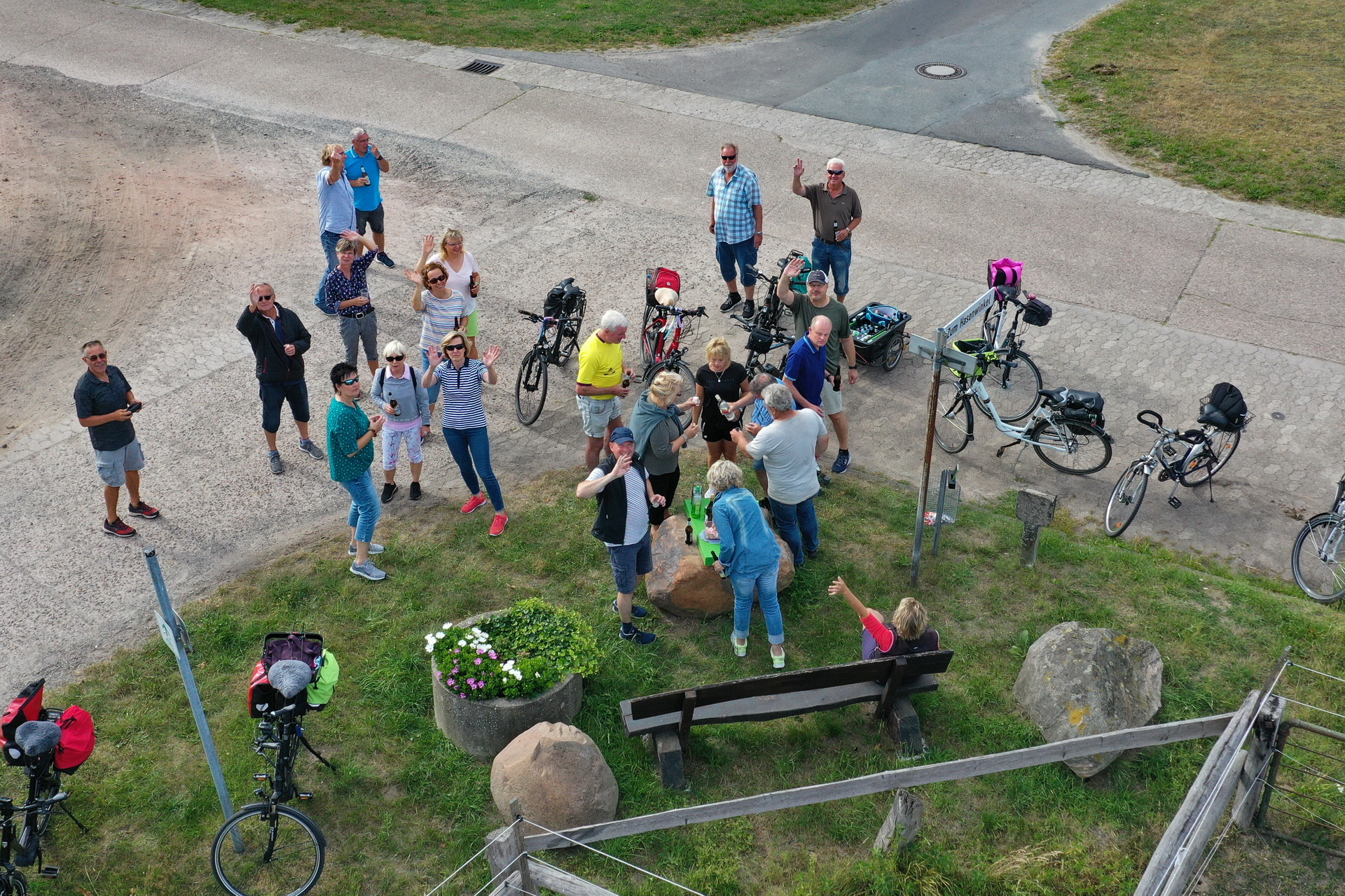 Wie jedes Jahr hat Sandra Brünjes zur Radtour eingeladen, und wie immer war die Tour perfekt vorbereitet (inklusive Wetter!). Nachdem die 23 Teilnehmer eingetroffen waren hatten wir wie durch Zauberei ein kleines Schnapsgläschen in der Hand und es wurde zum Start geblasen. Die erste Etappe führte uns vom Parktor in Speckenbüttel durch den Park und durch Langen und gaaaanz weit nördlich bis zum „Landhaus zum Nordpol“ an der B6. |