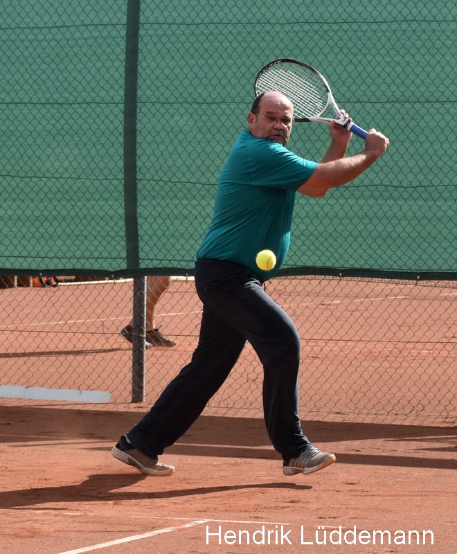 Herren 55 Nach seinem gesundheitlichen Ausscheiden bei dem 3. SFL Sport Herold-Cup im Juli, zeigte der an eins gesetzte Hendrik Lüddemann vom TG Uesen bei den 1. SFL Heidjer-Open sein starkes Ballgefühl. Er wusste allzeit genau, wie er seinen Gegner die Bälle legen musste, dass diese sich läuferisch zermürbten. So gewann er gegen Andreas Lill (TC Blau-Weiss Nesse) mit 6:1; 6:3 und gegen Hans-Joachim Zobel (TC Blau-Weiss Nesse) mit 6:1; 6:1. Ein souveränes Turnier spielte ebenfalls Stefan Fabeck von TC Wremen. Er bezwang in seinem ersten Spiel Torsten Schott (SFL Bremerhaven) mit 6:2; 6:0 und im zweiten Spiel Wilhelm Dicke, ebenfalls von SFL Bremerhaven, mit 6:1; 6:1. Ein sehr spannendes und intensives Spiel zeigten auch die Vereinskameraden von SFL Bremerhaven, Detlef Poguntke und Volker Kuhl. Die Nerven behielt am Ende Poguntke und gewann das Match mit 6:4; 6:7; 10:7. |