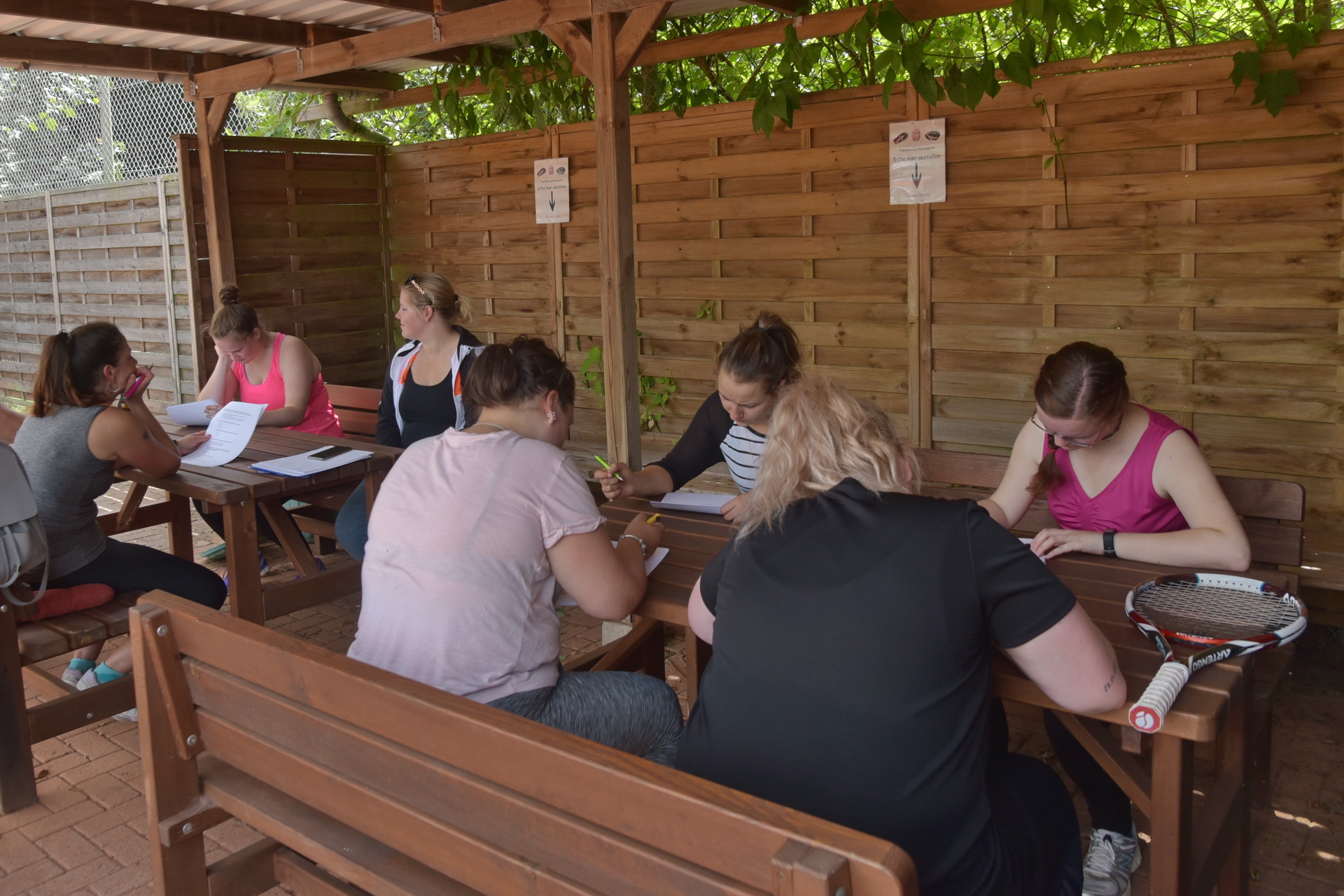Am Turniertag stellten sich insgesamt 12 Teilnehmer/-innen den unterschiedlichen Aufgaben, die für sie vorbereitet wurden. Jeder Teilnehmer hatte insgesamt drei Doppel á 30 Minuten gemeinsam mit seinem Paten zu absolvieren. In den Spielpausen wurden Fragebögen zum Tennissport ausgefüllt. Ballhochhalten und Hütchenschießen waren weitere Aufgaben, die den Teilnehmer/-innen Punkte für den Endsieg einbringen konnten. So hatte jeder Teilnehmer/-in Chancen auf den Turniersieg, selbst wenn ein Doppel nicht gewonnen wurde.