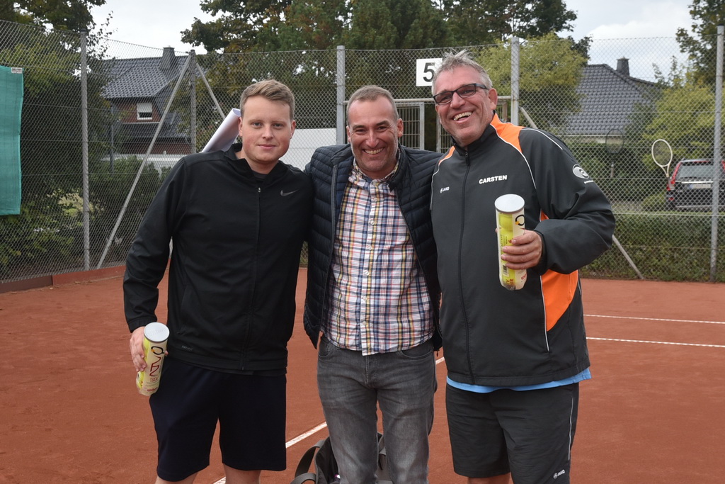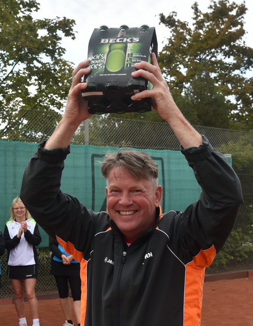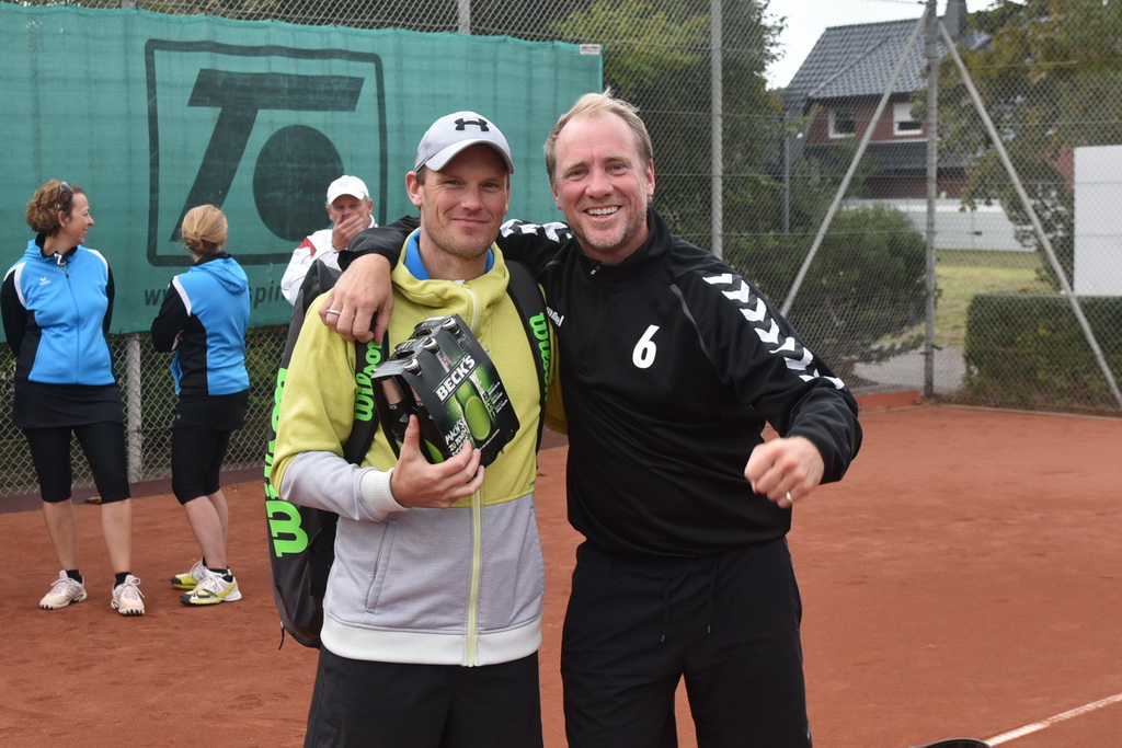 Das Endspiel war dann der absolute Höhepunkt des Tages, ein echter Hammer. Ausgeglichen waren die ersten beiden Sätze mit 6:4 und 4:6. Im Matchtiebreak setzen sich dann Hendrik und Carsten durch.