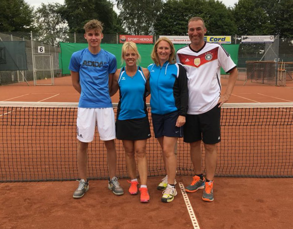 Beim Spiel um Platz 3 konnten sich Maria und Marco Graudenz gegen Biene Poguntke und Luca Graudenz mit 7:6 und 6:3 durchsetzen. Foto links von links: Luca Graudenz und Sabine Poguntke, Maria und Marco Graudenz |