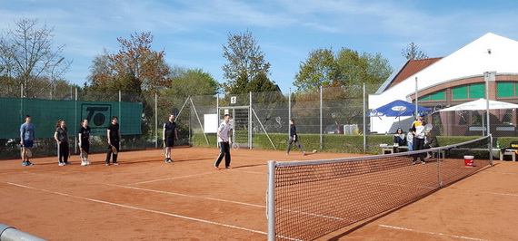 Bei kaltem und windigem Wetter fanden sich immerhin 14 Tennisspieler ein. Gut eingepackt begannen die ersten Ballwechsel.